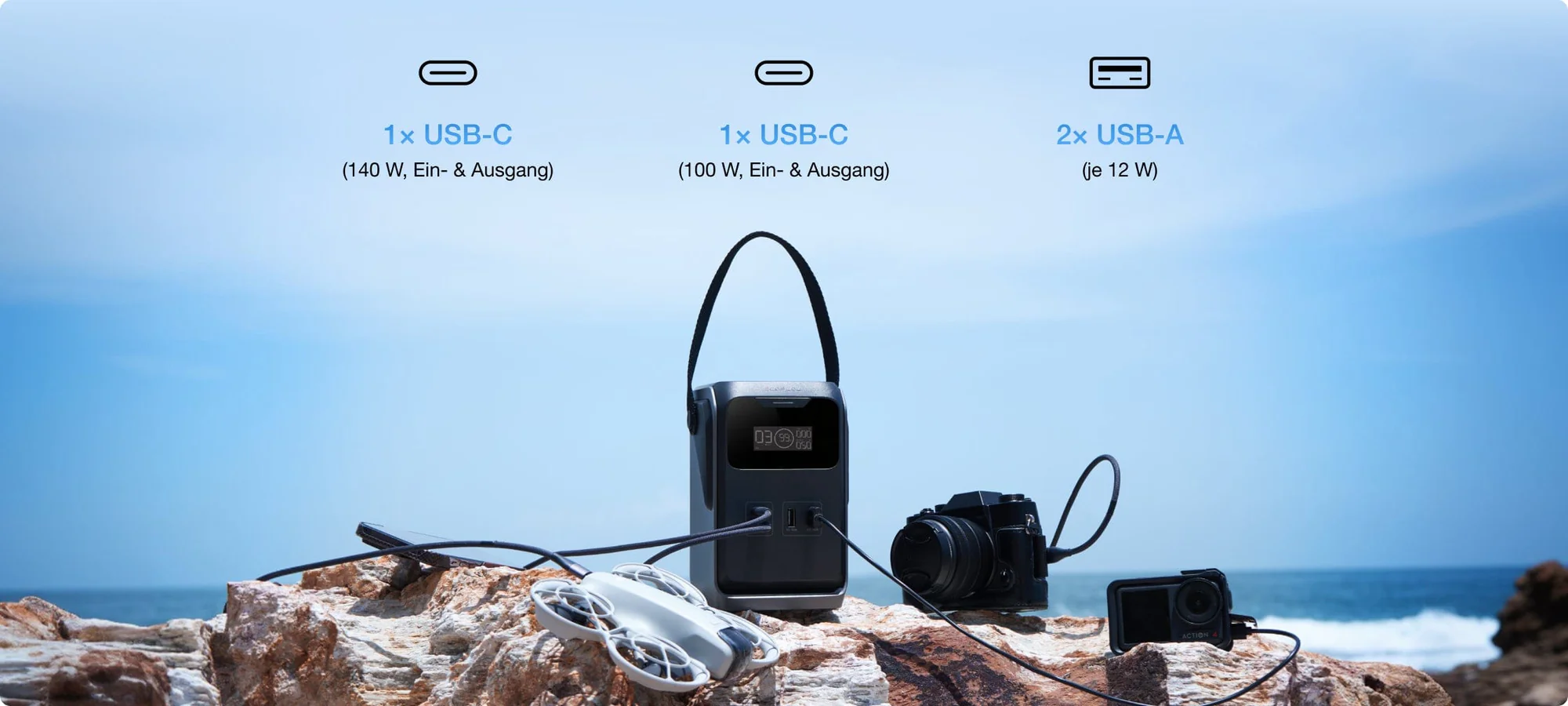 3. energie ke sdílení: Všestranné výstupy nabíjejí vaše zařízení i zařízení vašich přátel - pro dobrou náladu po celý den.