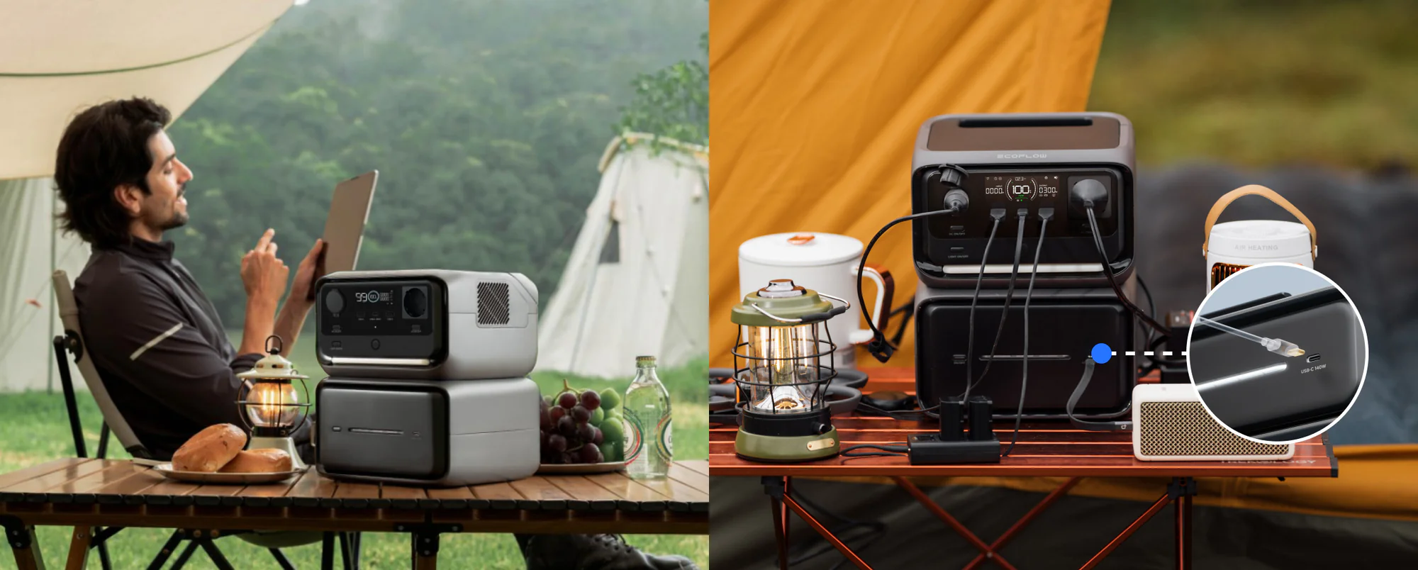 Erweitern Sie die Kapazität mit einer Zusatzbatterie und steigern Sie die Vielseitigkeit durch einen zusätzlichen 140 W USB-C Anschluss für eine weitere Lade- und Auflademöglichkeit. Dank des USB-C Anschlusses kann die Zusatzbatterie auch unabhängig genutzt werden.