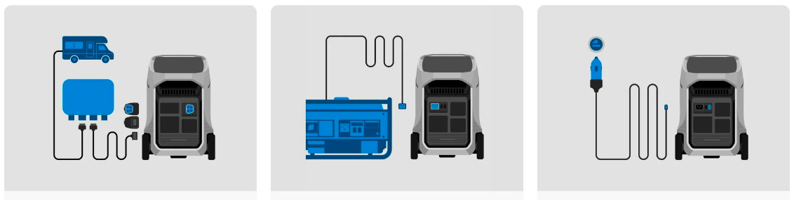 | 4 000 W, 6 000 W (X-Boost) | Unterstützt bis zu zwei DELTA Pro 3 Intelligente Zusatzbatterien / DELTA Pro Intelligente Zusatzbatterien |