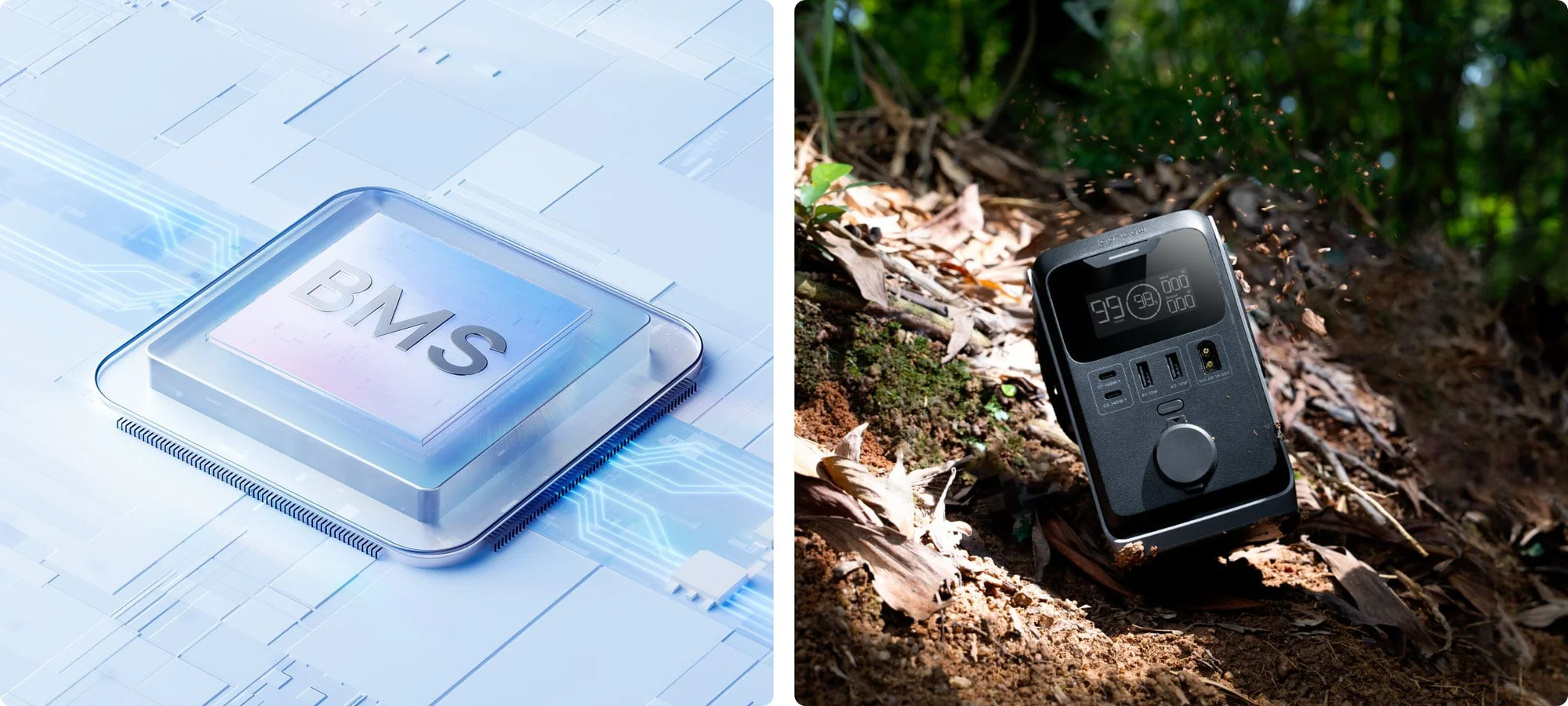 Les cellules de batterie premium à longue durée de vie, combinées à un BMS intelligent, garantissent jusqu'à cinq ans de puissance fiable en plein air. Cinq couches de protection à l'intérieur et à l'extérieur offrent une protection optimale en cas de chute - résistant aux chocs à chaque pas, que ce soit en randonnée, en escalade ou en voyage. En combinaison avec le sac de transport étanche*, votre équipement reste au sec même lors de vos sorties de pêche ou de kayak.